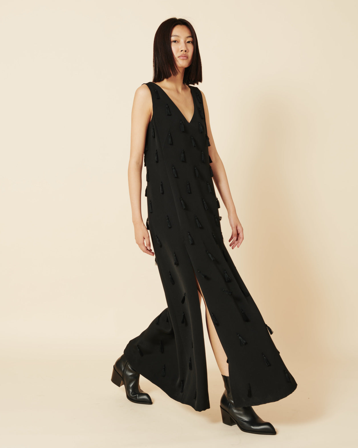 Long Silk Evening Dress with Tassels
